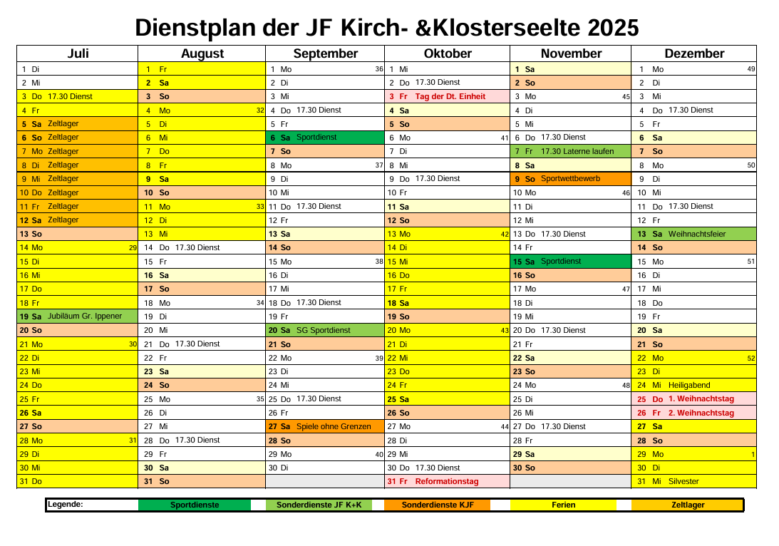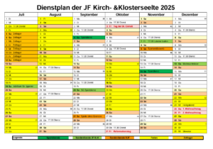 Dienstplan 2. Halbjahr 2025